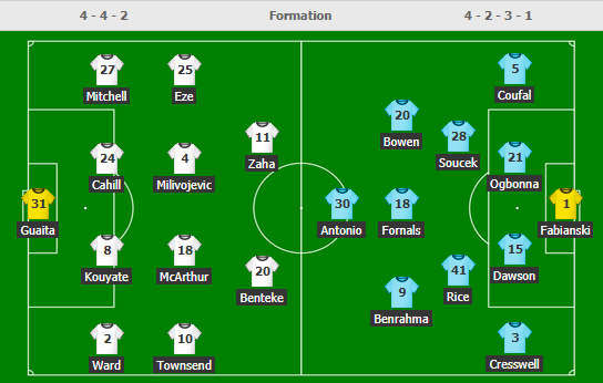 AEGoal cập nhật chính xác ĐỘI HÌNH RA SÂN trận Crystal Palace vs West Ham diễn ra lúc 01h00 ngày 27/01 trong khuôn khổ giải Ngoại hạng Anh.