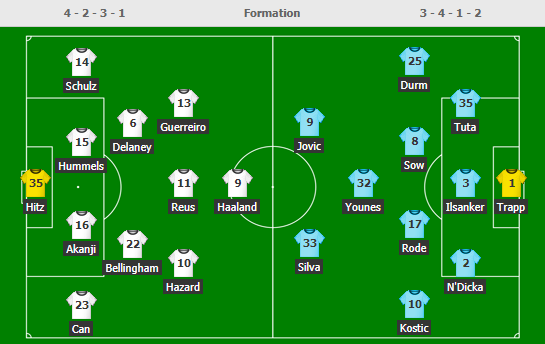 AEGoal cập nhật chính xác ĐỘI HÌNH RA SÂN trận Dortmund vs Eintracht Frankfurt diễn ra lúc 20h30 ngày 03/04 trong khuôn khổ giải VĐQG Đức.