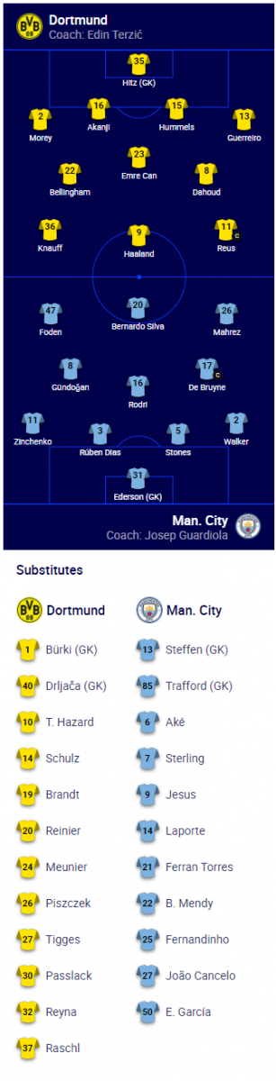 ĐỘI HÌNH RA SÂN trận Dortmund vs Man City, 02h00 ngày 15/4: UEFA Champions League