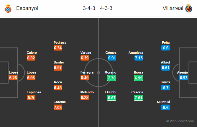 AEGoal.net cập nhật chính xác ĐỘI HÌNH RA SÂN trận Espanyol vs Villarreal diễn ra lúc 21h00 ngày 20/10 trong khuôn khổ Vòng 9 - VĐQG Tây Ban Nha
