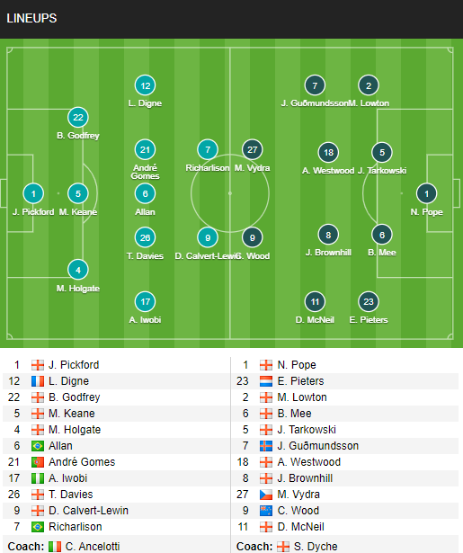 AEGoal cập nhật chính xác ĐỘI HÌNH RA SÂN trận Everton vs Burnley diễn ra lúc 00h30 ngày 14/03 trong khuôn khổ giải Ngoại hạng Anh.