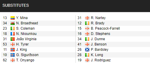 Everton: Doucouré, Gbamin, Delph, James chấn thương. Mina, Coleman, Olsen, Sigurdsson đang bị đau nhẹ