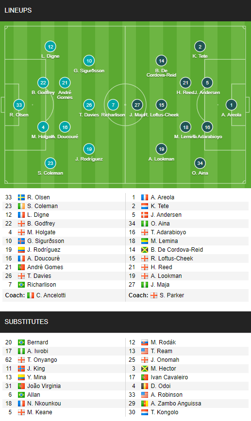 AEGoal cập nhật chính xác ĐỘI HÌNH RA SÂN trận Everton vs Fulham diễn ra lúc 02h00 ngày 15/2 trong khuôn khổ vòng 24 giải Ngoại hạng Anh.