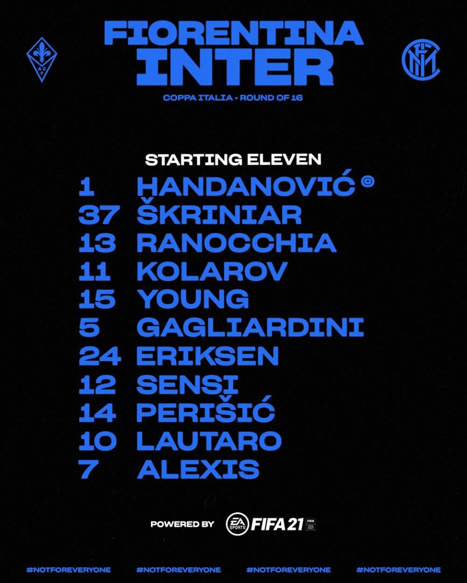 AEGoal cập nhật chính xác ĐỘI HÌNH RA SÂN trận Fiorentina vs Inter Milan diễn ra lúc 21h00 ngày 13/01 trong khuôn khổ cúp QG Italia