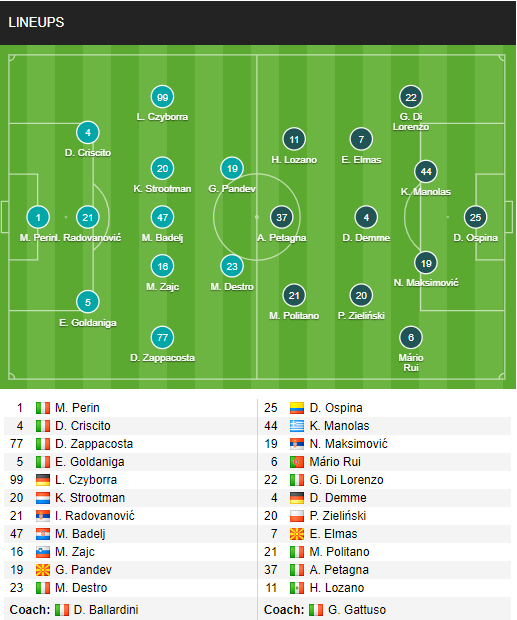 - Napoli: Diego Demme chấn thương còn Fabián Ruiz vắng mặt vì covid.