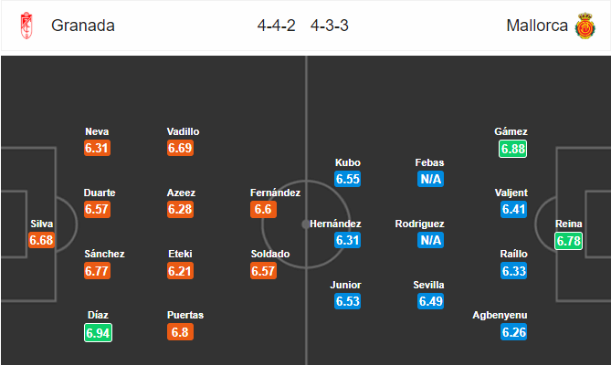 AEGoal.net cập nhật chính xác ĐỘI HÌNH RA SÂN trận Granada vs Mallorca diễn ra lúc 18h00 ngày 05/01 trong khuôn khổ vòng 19 giải VĐQG Tây Ban Nha.