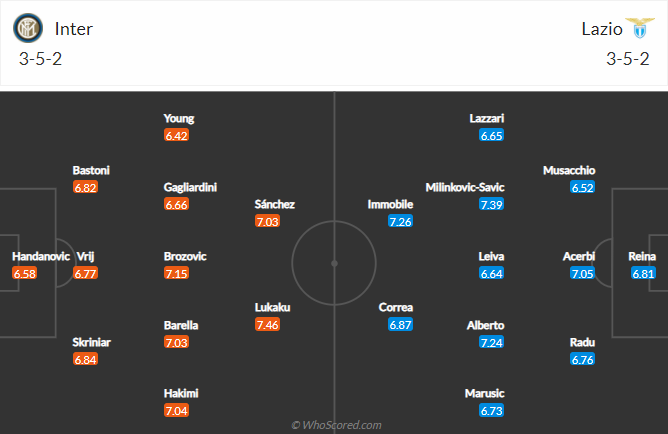 Lazio: Reina; Patric, Acerbi, Radu; Lazzari, Milinkovic-Savic, Leiva, Luis Alberto, Marusic; Correa, Immobile