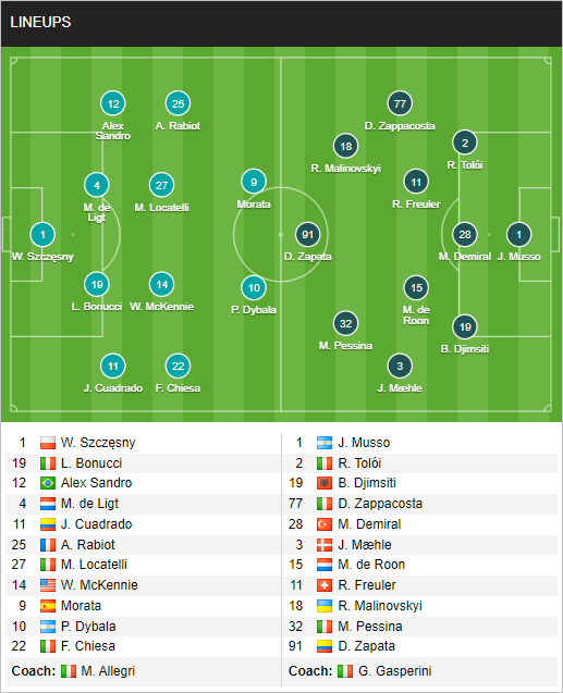 AEGoal cập nhật chính xác ĐỘI HÌNH RA SÂN trận Juventus vs Atalanta diễn ra lúc 00h00 ngày 28/11 trong khuôn khổ giải VĐQG Italia.