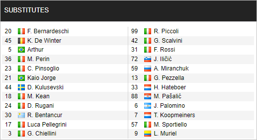 * Danh sách dự bị trận Juventus vs Atalanta, 00h00 ngày 28/11: Serie A