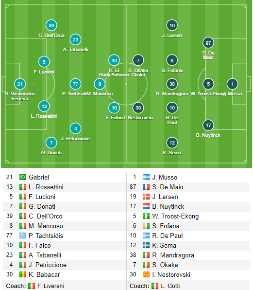 AEGoal.net cập nhật chính xác ĐỘI HÌNH RA SÂN trận Lecce vs Udinese diễn ra lúc 00h00 ngày 07/1 trong khuôn khổ Vòng 18 giải VĐQG Italia.