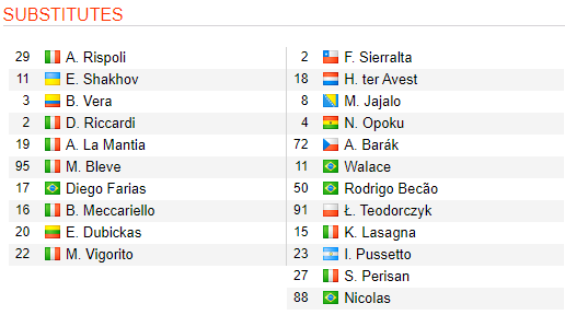 * Danh sách dự bị trận Lecce vs Udinese, 00h00 ngày 07/01: VĐQG Italia