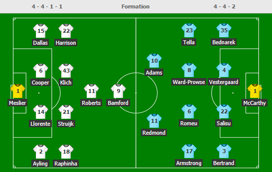 AEGoal cập nhật chính xác ĐỘI HÌNH RA SÂN trận Leeds Utd vs Southampton diễn ra lúc 01h00 ngày 24/02 trong khuôn khổ giải Ngoại hạng Anh.
