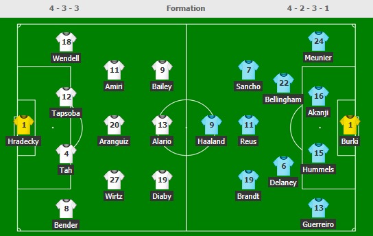 - Leverkusen: Palacios, Paulinho, Arias, Weiser chấn thương còn Aránguiz, Fosu-Mensah, Florian Wirtz, Alario, Bellarabi và Sven Bender bỏ ngỏ khả năng ra sân.
