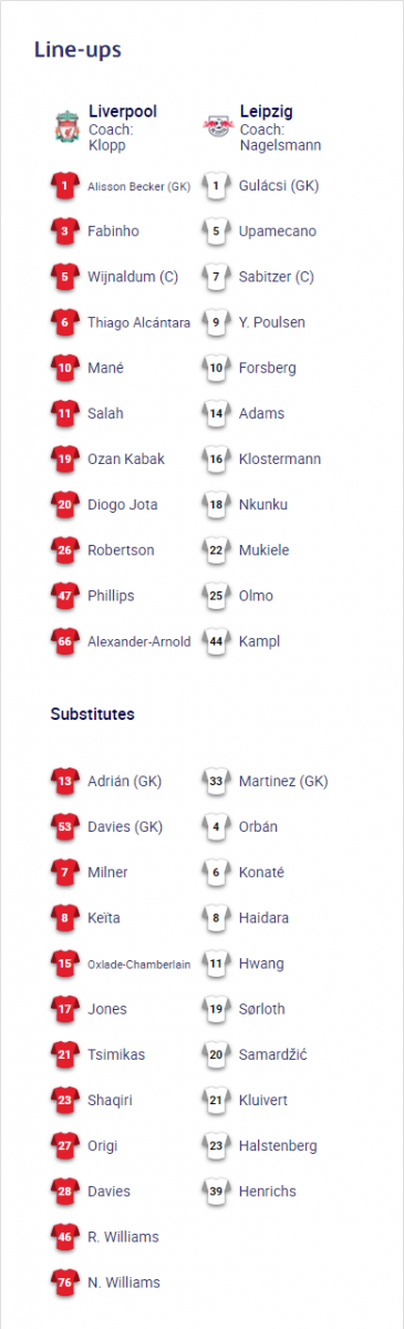 - Trận đấu: Liverpool vs RB Leipzig (UEFA Champions League)