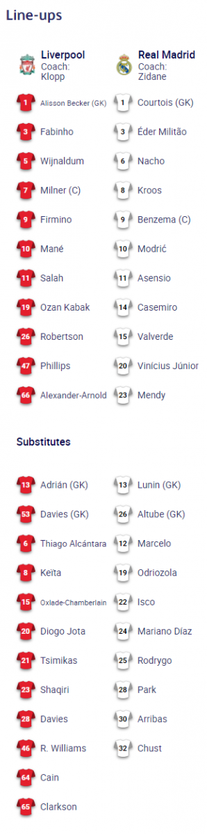 AEGoal cập nhật chính xác ĐỘI HÌNH RA SÂN trận Liverpool vs Real Madrid diễn ra lúc 02h00 ngày 15/4 trong khuôn khổ UEFA Champions League.