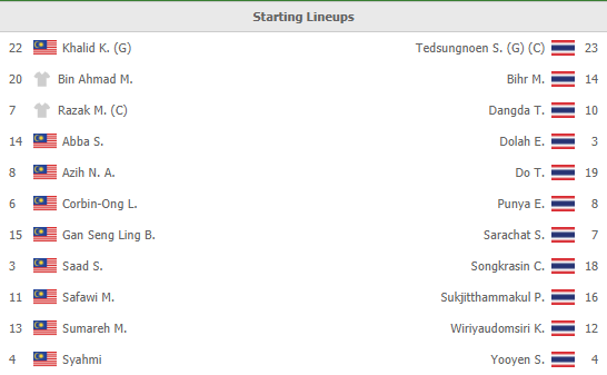 Malaysia (4-2-3-1): Marlias - Davies, Aidil Zafuan, Saad, Corbin-Ong - B.Gan, Azam Azih - Sumareh, Ahmad, S.Rasid - Talaha