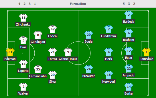 AEGoal cập nhật chính xác ĐỘI HÌNH RA SÂN trận Man City vs Sheffield Utd diễn ra lúc 22h00 ngày 30/01 trong khuôn khổ giải Ngoại hạng Anh.