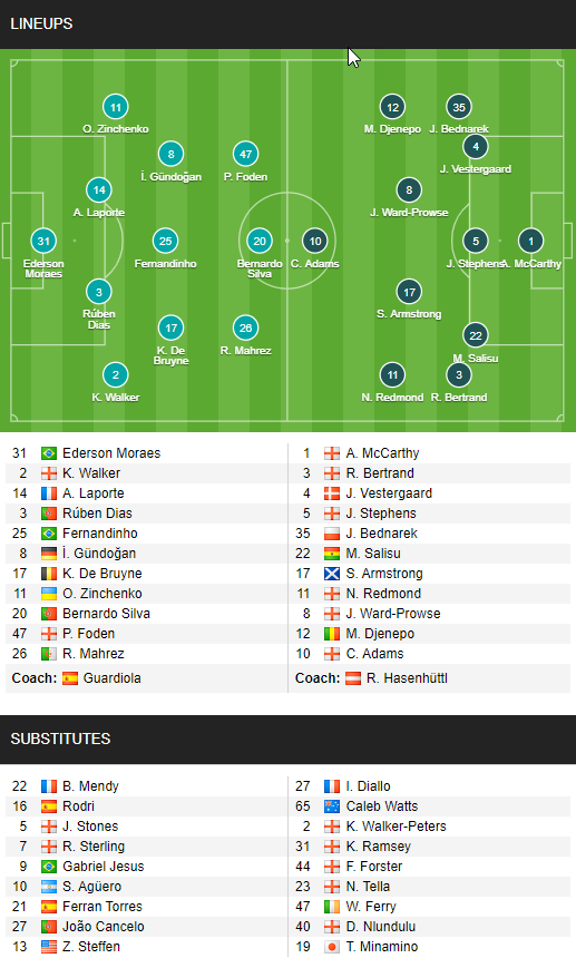 AEGoal cập nhật chính xác ĐỘI HÌNH RA SÂN trận Man City vs Southampton diễn ra lúc 01h00 ngày 11/03 trong khuôn khổ giải Ngoại hạng Anh