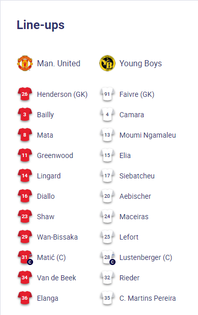 AEGoal cập nhật chính xác ĐỘI HÌNH RA SÂN trận Man Utd vs Young Boys diễn ra lúc 03h00 ngày 09/12 trong khuôn khổ vòng bảng cúp C1 Châu Âu.