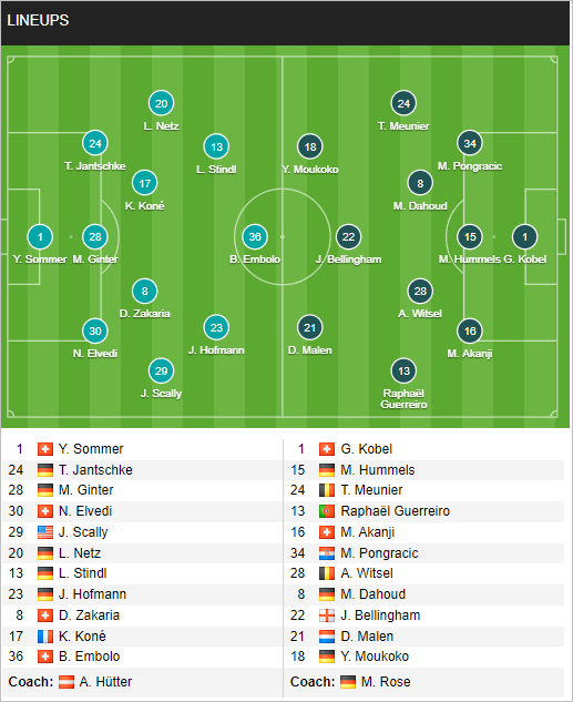 AEGoal cập nhật chính xác ĐỘI HÌNH RA SÂN trận Monchengladbach vs Dortmund diễn ra lúc 23h30 ngày 25/9 trong khuôn khổ giải VĐQG Đức.