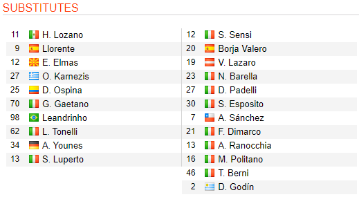 - Napoli: Malcuit, Ghoulam, Tonelli, Koulibaly, Mertens chấn thương còn Maksimovic bị treo giò trong khi Fabián Ruiz không thực sự sung sức.