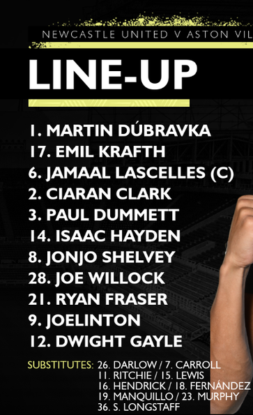 AEGoal cập nhật chính xác ĐỘI HÌNH RA SÂN trận Newcastle vs Aston Villa diễn ra lúc 03h00 ngày 13/03 trong khuôn khổ giải Ngoại hạng Anh.