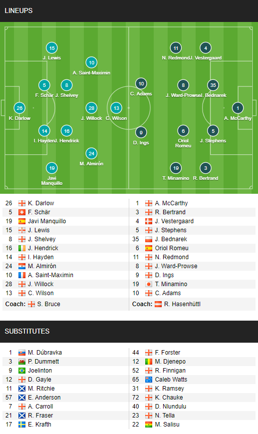 AEGoal cập nhật chính xác ĐỘI HÌNH RA SÂN trận Newcastle vs Southampton diễn ra lúc 22h00 ngày 06/02 trong khuôn khổ giải Ngoại hạng Anh.