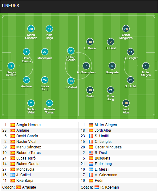 - Barcelona: Vắng Philippe Coutinho, Ansu Fati, Sergi Roberto và Gerrard Pique (chấn thương); Khả năng ra sân của Miralem Pjanic và Ronald Araujo còn bỏ ngỏ.