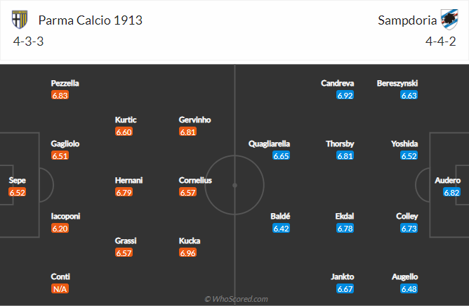 AEGoal cập nhật chính xác ĐỘI HÌNH RA SÂN trận Parma vs Sampdoria diễn ra lúc 02h45 ngày 25/01 trong khuôn khổ giải VĐQG Italia.