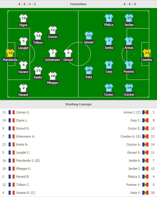 AEGoal.net cập nhật chính xác ĐỘI HÌNH RA SÂN trận Pháp vs Moldova diễn ra lúc 02h45 ngày 15/11 trong khuôn khổ Bảng H - Vòng loại EURO 2020.