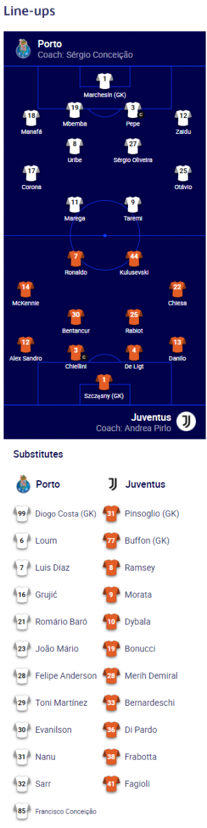 AEGoal cập nhật chính xác ĐỘI HÌNH RA SÂN trận Porto vs Juventus diễn ra lúc 03h00 ngày 18/02 trong khuôn khổ UEFA Champions League.