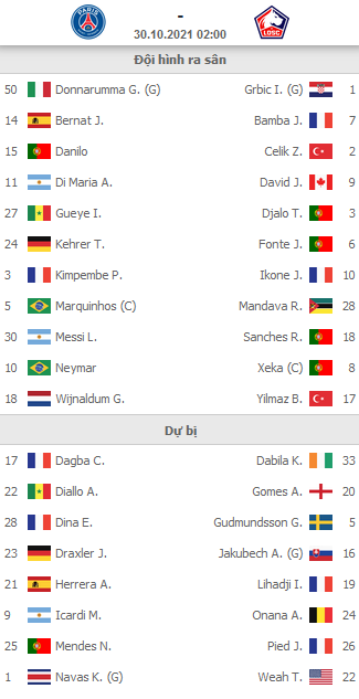 AEGoal cập nhật chính xác ĐỘI HÌNH RA SÂN trận PSG vs Lille diễn ra lúc 02h00 ngày 30/10 trong khuôn khổ giải VĐQG Pháp