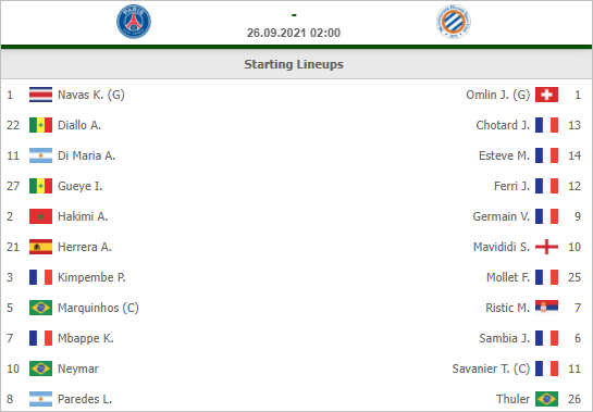 AEGoal cập nhật chính xác ĐỘI HÌNH RA SÂN trận PSG vs Montpellier diễn ra lúc 02h00 ngày 26/9 trong khuôn khổ giải VĐQG Pháp.