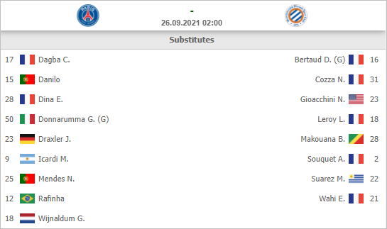 * Danh sách dự bị trận PSG vs Montpellier, 02h00 ngày 26/9: VĐQG Pháp
