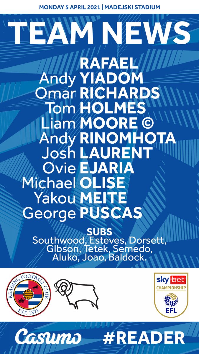 AEGoal cập nhật chính xác ĐỘI HÌNH RA SÂN trận Reading vs Derby County diễn ra lúc 21h00 ngày 05/4 trong khuôn khổ giải Hạng nhất Anh.