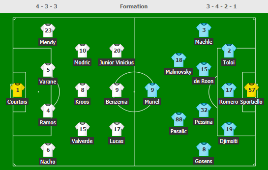 AEGoal cập nhật chính xác ĐỘI HÌNH RA SÂN trận Real Madrid vs Atalanta diễn ra lúc 03h00 ngày 17/03 trong khuôn khổ giải UEFA Champions League.