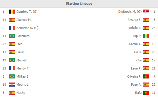 Real Madrid: Eden Hazard, Daniel Carvajal, Sergio Ramos và Federico Valverde vắng mặt vì chấn thương, khả năng ra sân của Toni Kroos còn bỏ ngỏ.