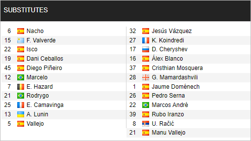 * Danh sách dự bị trận Real Madrid vs Valencia, 3h00 ngày 9/1: La Liga