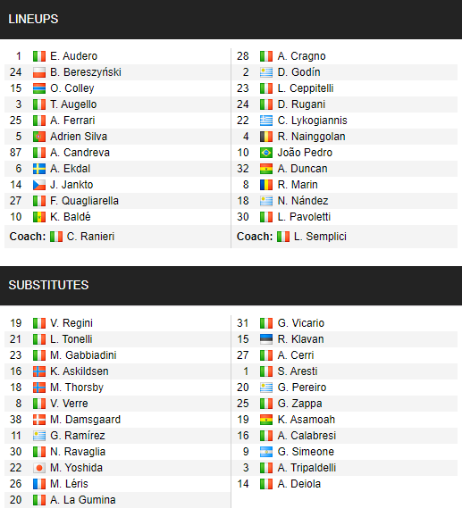 ĐỘI HÌNH RA SÂN trận Sampdoria vs Cagliari, 00h00 ngày 08/03: VĐQG Italia