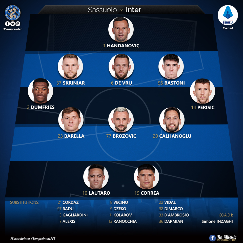 AEGoal cập nhật chính xác ĐỘI HÌNH RA SÂN trận Sassuolo vs Inter Milan diễn ra lúc 01h45 ngày 3/10 trong khuôn khổ giải VĐQG Italia.