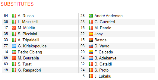Lazio: Strakosha; Patric, Luiz Felipe, Acerbi; Lazzari, Milinkovic-Savic, Leiva, Luis Alberto, Lulic; Correa, Immobile