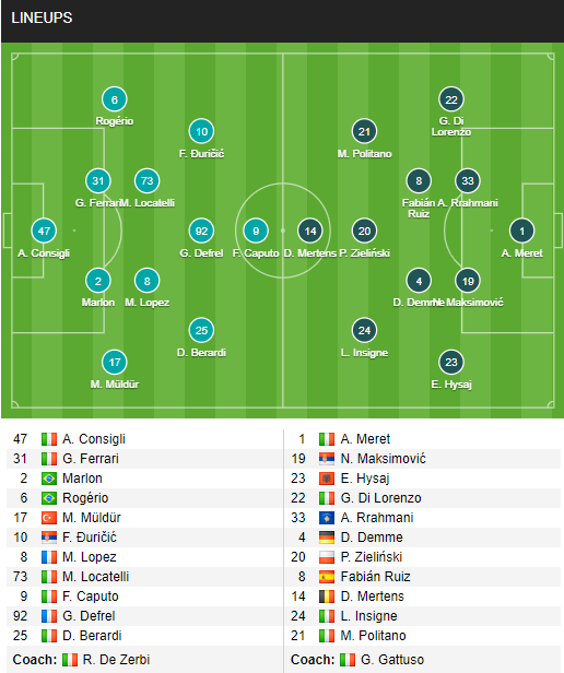 ĐỘI HÌNH RA SÂN trận Sassuolo vs Napoli, 00h30 ngày 04/3: VĐQG Italia