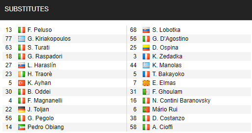 * Danh sách dự bị trận Sassuolo vs Napoli, 00h30 ngày 04/3: VĐQG Italia