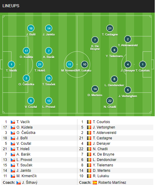 AEGoal cập nhật chính xác ĐỘI HÌNH RA SÂN trận Séc vs Bỉ diễn ra lúc 02h45 ngày 28/03 trong khuôn khổ Vòng loại World Cup 2022 khu vực châu Âu.