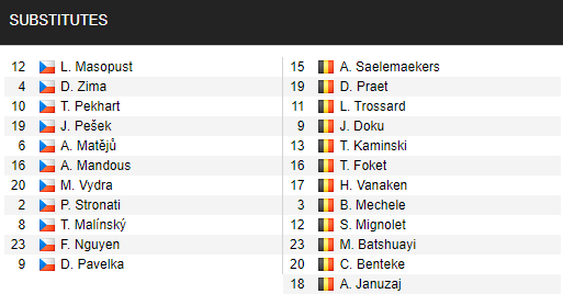 ĐỘI HÌNH RA SÂN trận Séc vs Bỉ, 02h45 ngày 28/03: Vòng loại World Cup