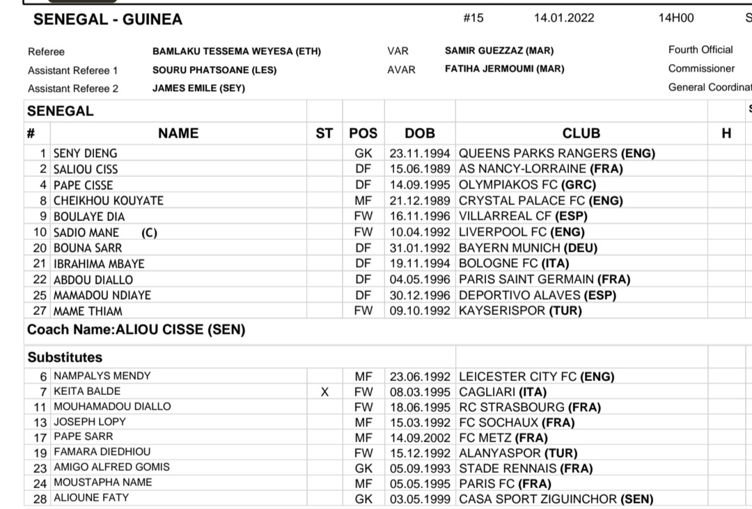 ĐỘI HÌNH RA SÂN trận Senegal vs Guinea, 20h00 ngày 14/1: CAN 2021
