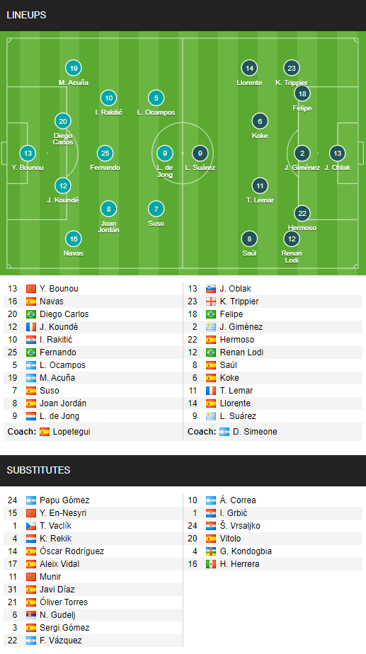 ĐỘI HÌNH RA SÂN trận Sevilla vs Atletico Madrid, 02h00 ngày 05/4: VĐQG Tây Ban Nha