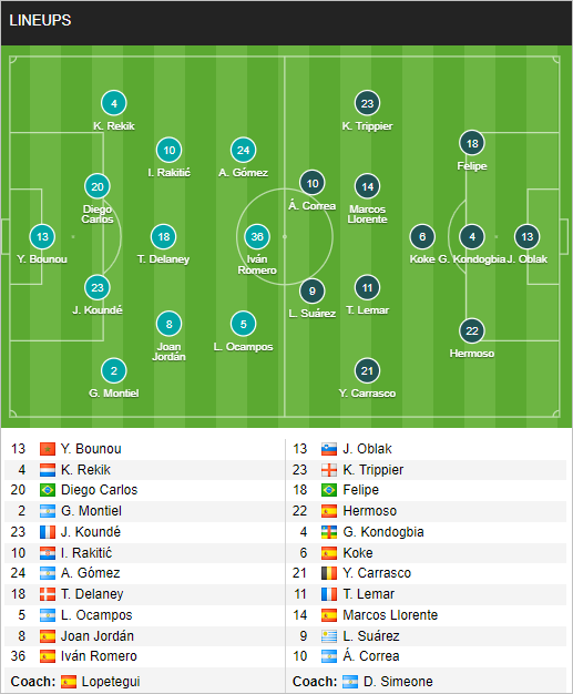 AEGoal cập nhật chính xác ĐỘI HÌNH RA SÂN trận Sevilla vs Atletico Madrid diễn ra lúc 03h00 ngày 19/12 trong khuôn khổ giải VĐQG Tây Ban Nha.