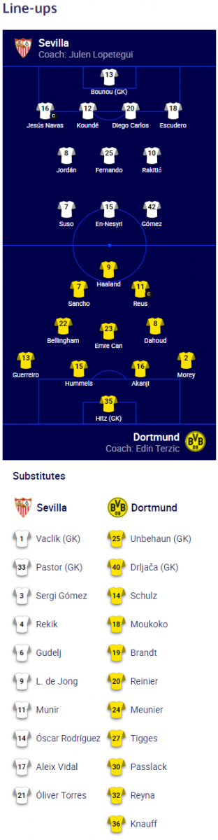 AEGoal cập nhật chính xác ĐỘI HÌNH RA SÂN trận Sevilla vs Dortmund diễn ra lúc 03h00 ngày 18/02 trong khuôn khổ UEFA Champions League.