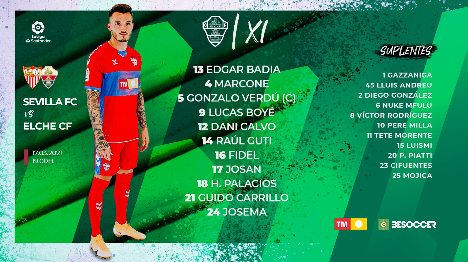 ĐỘI HÌNH RA SÂN trận Sevilla vs Elche, 01h00 ngày 18/03: VĐQG Tây Ban Nha
